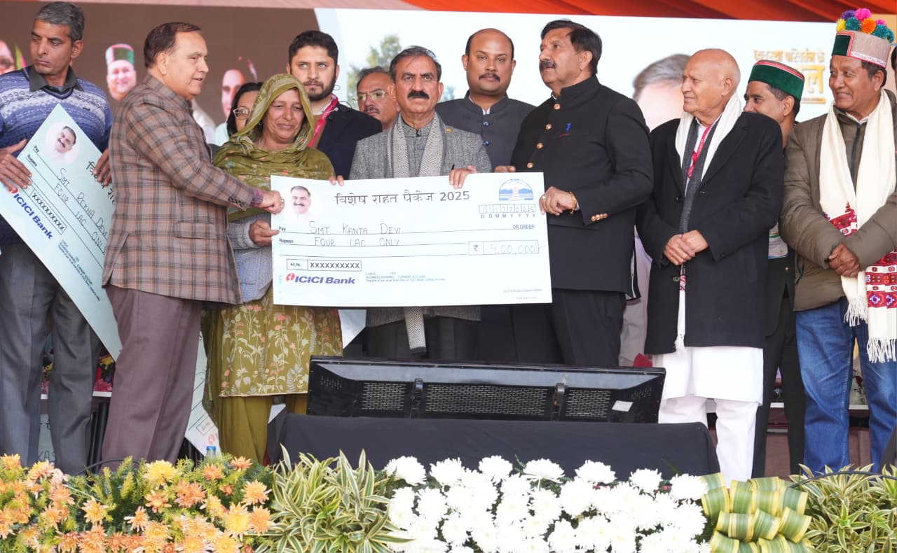 The Chief Minister transferred Rs. 50.63 lakh directly into the bank accounts of 401 beneficiaries under the Rajiv Gandhi Prakritik Kheti Khushal Kisan Yojana. A Special relief assistance amounting to Rs. 51,1,22,700 was also disbursed to disaster-affected families of Chamba, Hamirpur, Kangra, Lahaul-Spiti, Sirmaur, Solan and Una districts.