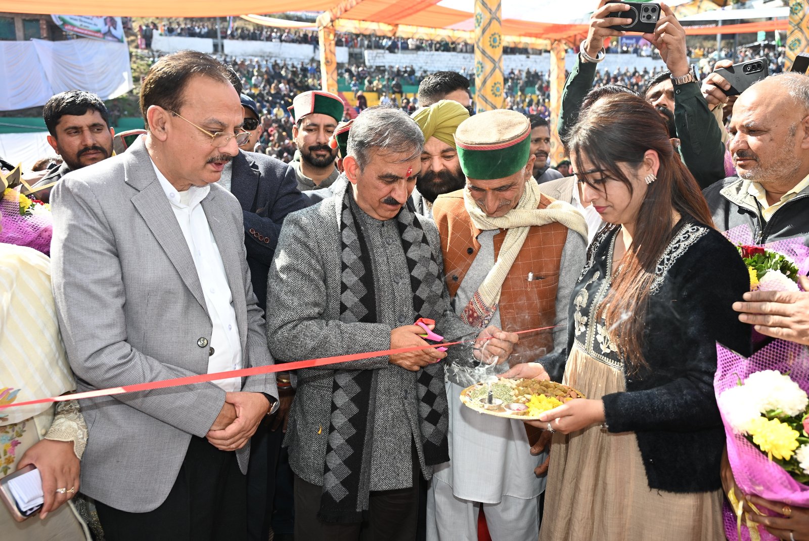 Shimla: Addressing a large public gathering in Sarahan, Pachhad Assembly Constituency of Sirmaur district, the Chief Minister Thakur Sukhvinder Singh Sukhu emphasized the State government’s efforts to strengthen the rural economy. He said that the state government is providing support price for milk and soon minimum support price will be given on ginger also. He said that within a year, the Sarahan hospital will have specialist doctors and ultrasound machine. He announced opening of a CBSE school in Sarahan and double-laning of the Sarahan-Chandigarh road. He also promised to fulfill all the demands of local Congress leader Dayal Pyari and former Assembly Speaker Gangu Ram Musafir.