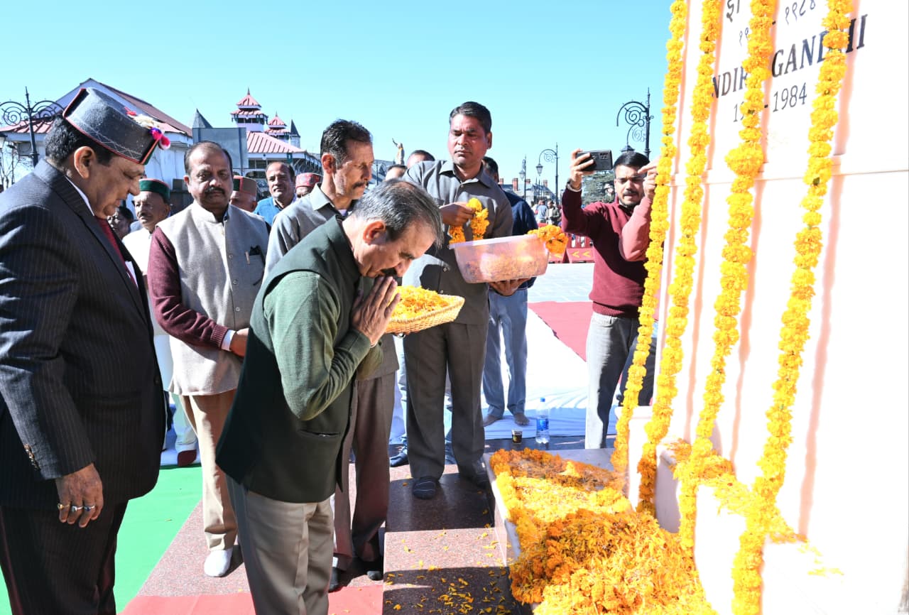 He said that she made the supreme sacrifice to safeguard the unity and integrity of the nation. Health and Family Welfare Minister Dr. (Col.) Dhani Ram Shandil, Panchayati Raj Minister Anirudh Singh, HPCC President Pratibha Singh, Deputy Chief Whip Kewal Singh Pathania, MLA Sanjay Rattan, Harish Janartha, Ranjeet Singh Rana and Malender Rajan, Principal Media Advisor to the Chief Minister Naresh Chauhan, HIMUDA Vice Chairman Yashwant Chajta, Mayor Surendra Chauhan, Deputy Mayor Uma Kaushal, Councillors, Deputy Commissioner Anupam Kashyap, SP Sanjeev Gandhi and other dignitaries were present on the occasion.