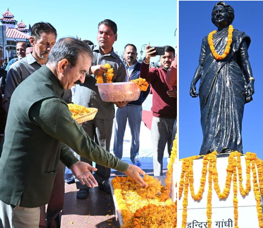 Shimla: Chief Minister Thakur Sukhvinder Singh Sukhu paid floral tribute to India’s first woman Prime Minister, Indira Gandhi, on her birth anniversary at the historic Ridge today.