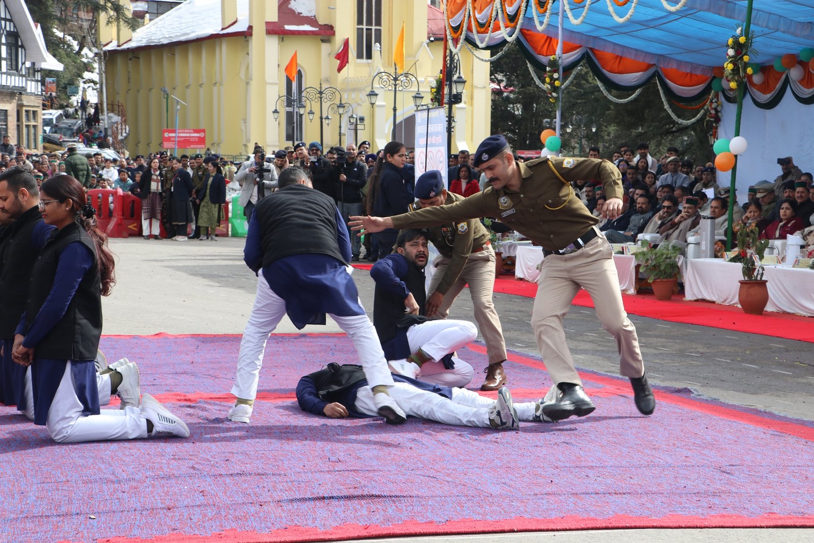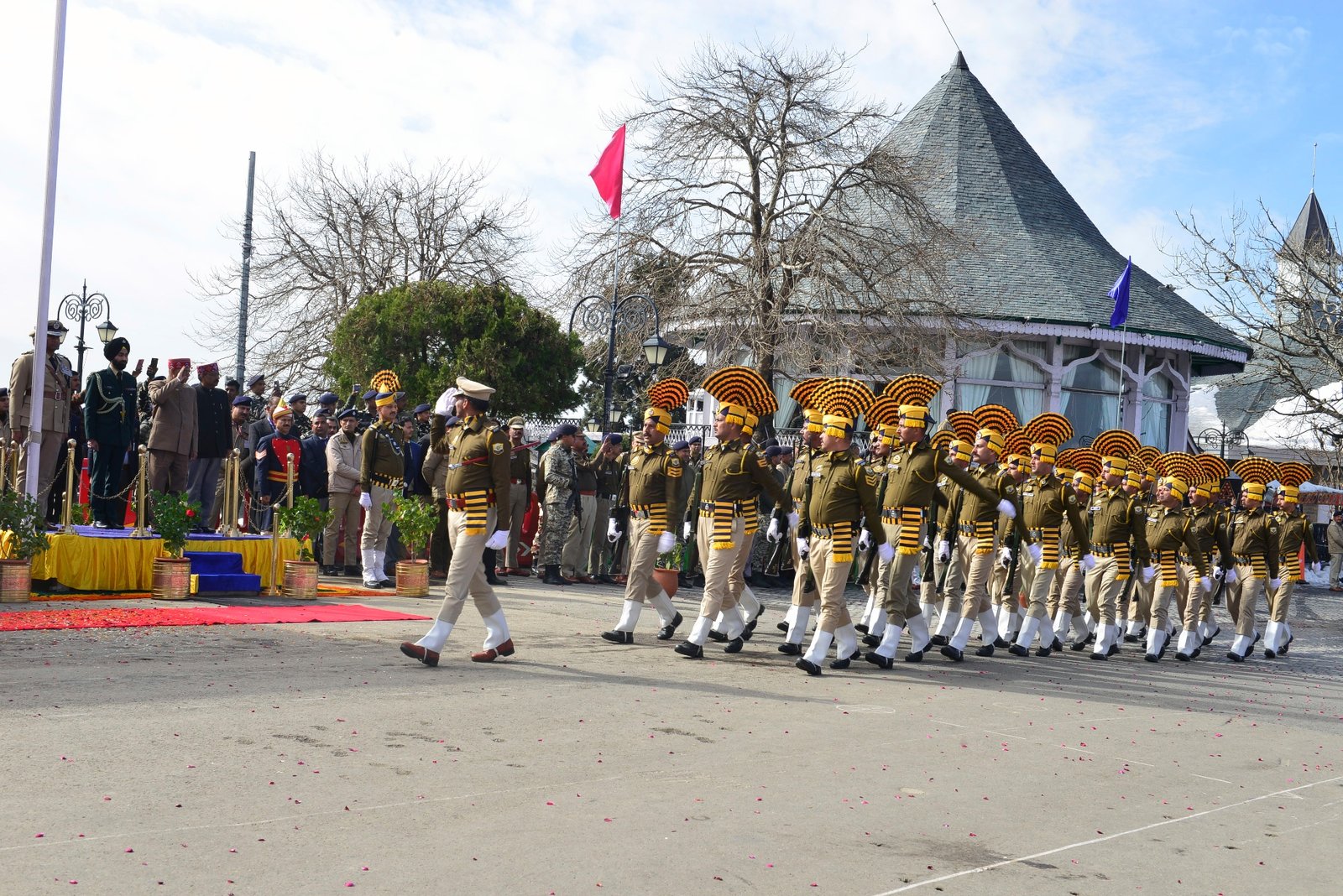 The march past featured contingents from the Indian Army, Indo-Tibetan Border Police, Sashastra Seema Bal, Punjab Police, Himachal Pradesh Police, Home Guards, Fire Services, Himachal Pradesh Postal Services, Disaster Management, ex-servicemen, National Cadet Corps, National Service Scheme, Bharat Scouts and Guides and other units, reflecting discipline, unity and national pride.