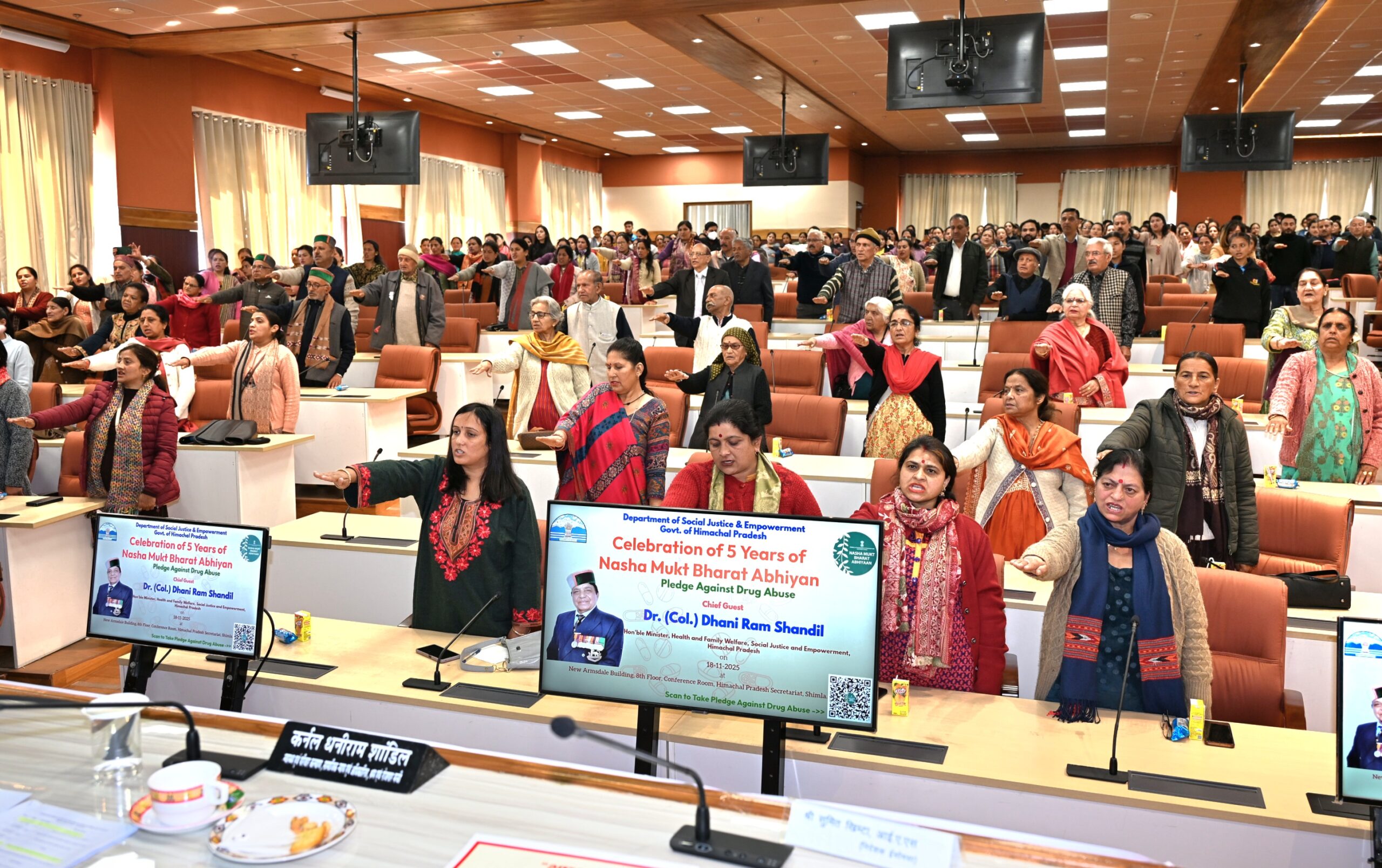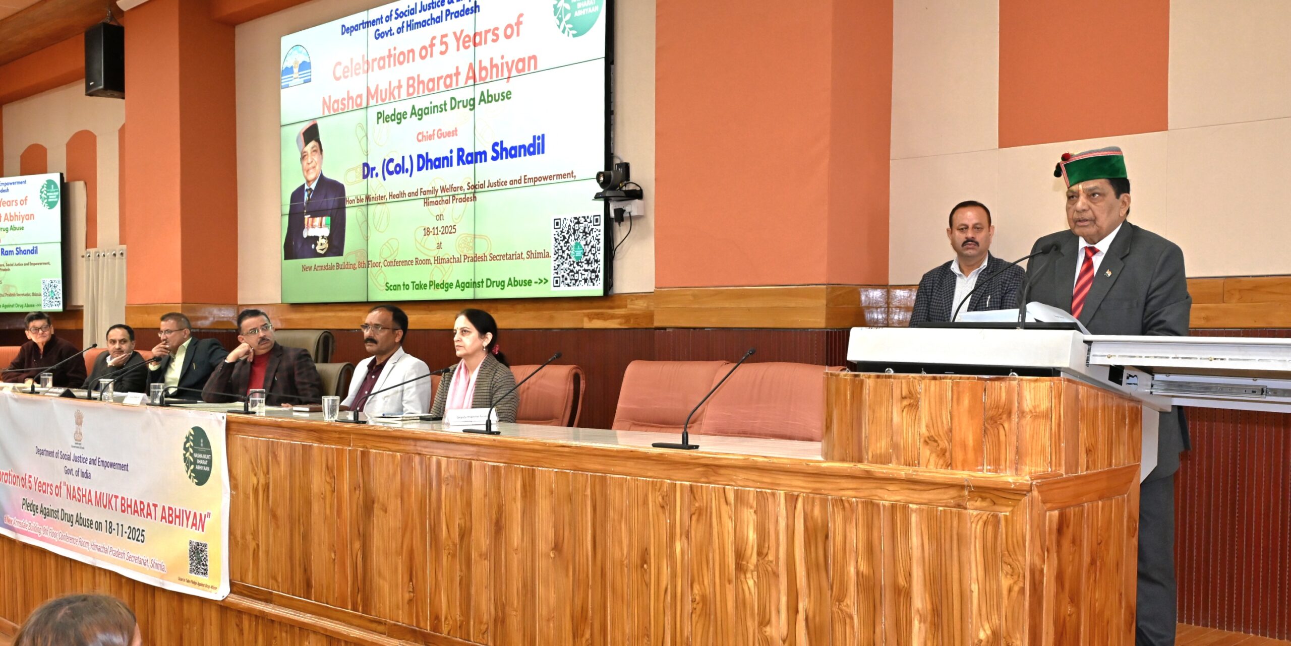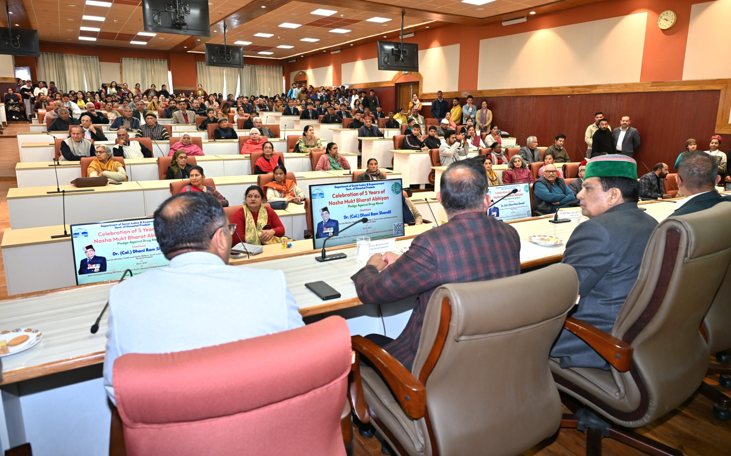 Shimla: A state-level event was organised here today under the chairmanship of Social Justice & Empowerment and Health & Family Welfare Minister Dr (Col.) Dhani Ram Shandil to mark the completion of five years of the Nasha Mukt Bharat Abhiyan. The campaign has been running successfully across all states of the country for the past five years, with the aim of spreading awareness among youth about the harmful effects of substance abuse.