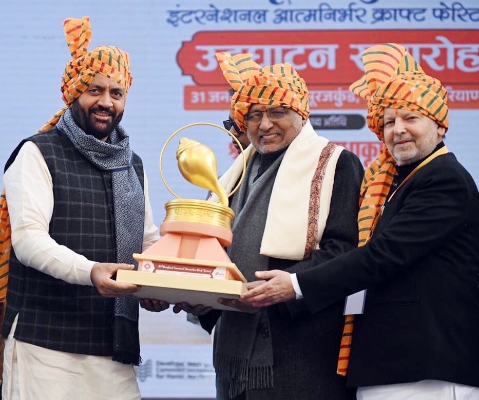 Addressing the gathering, Sh. C.P. Radhakrishnan said that the Surajkund International Crafts Festival has long been a vibrant symbol of India’s cultural soul, artistic excellence, and civilizational continuity. This festival manifests the timeless Indian philosophy of Vasudhaiva Kutumbakam, which regards the world as one family. It brings together skilled hands, innovative minds, and traditions that shape our identity onto a common platform, he said. He highlighted that for nearly four decades, the festival has provided global recognition to artisans, weavers, sculptors, painters, and folk artists, preserving generations-old art forms. This year’s focus on a self-reliant India has further amplified the festival’s significance, as these artisans are custodians of centuries-old knowledge whose empowerment lays the foundation of an inclusive, resilient, and sustainable economy.